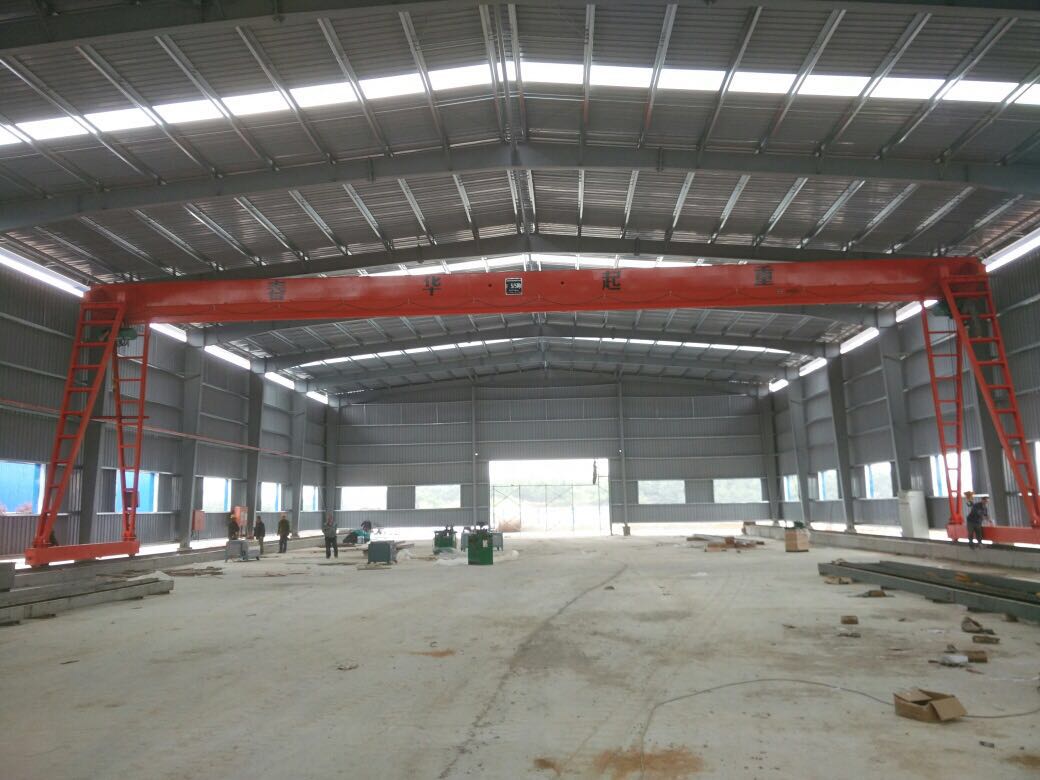 起重機(jī)門架由主梁、地梁、支腿、梯子平臺等部分組成。 主梁是葫蘆式起重機(jī)的主要承載構(gòu)件,同時又是懸掛電動葫蘆的運(yùn)行軌道。主梁由角鋼等型鋼焊接的支撐架與工字鋼組焊成三角形梁。主梁按要求制做成上拱形,電動葫蘆小車在工字鋼翼緣上運(yùn)行。當(dāng)額定起重量和葫蘆自重位于跨中時引起的下?lián)喜坏玫陀谒骄€,正常工作時無永久變形。主梁跨度位置兩側(cè)設(shè)計(jì)有與支腿連接的馬鞍座,并有矩形鋼板連接法蘭。地梁是支承主梁和載荷的基礎(chǔ),同時也是主梁與運(yùn)行機(jī)構(gòu)的紐帶,是合肥起重機(jī)金屬結(jié)構(gòu)的主要承載構(gòu)件之一,主要由角鋼焊接而成,地梁端部設(shè)有緩沖器。